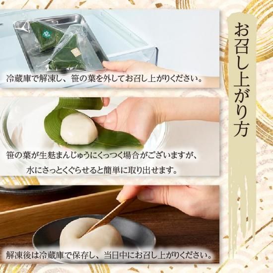 - 笹の葉が生麩まんじゅうにくっつく場合がございますが、水にさっとくぐらせると簡単に取り出せます。